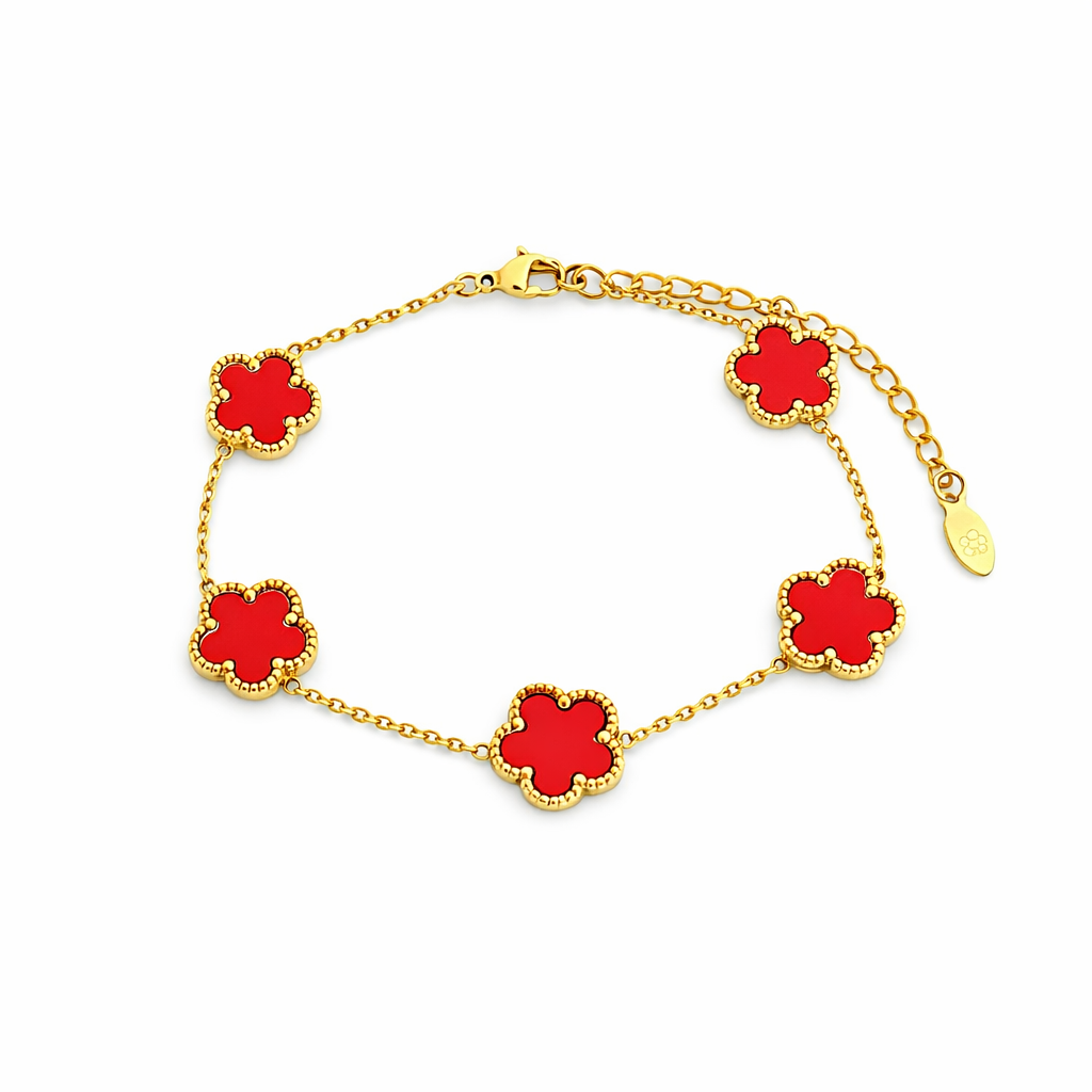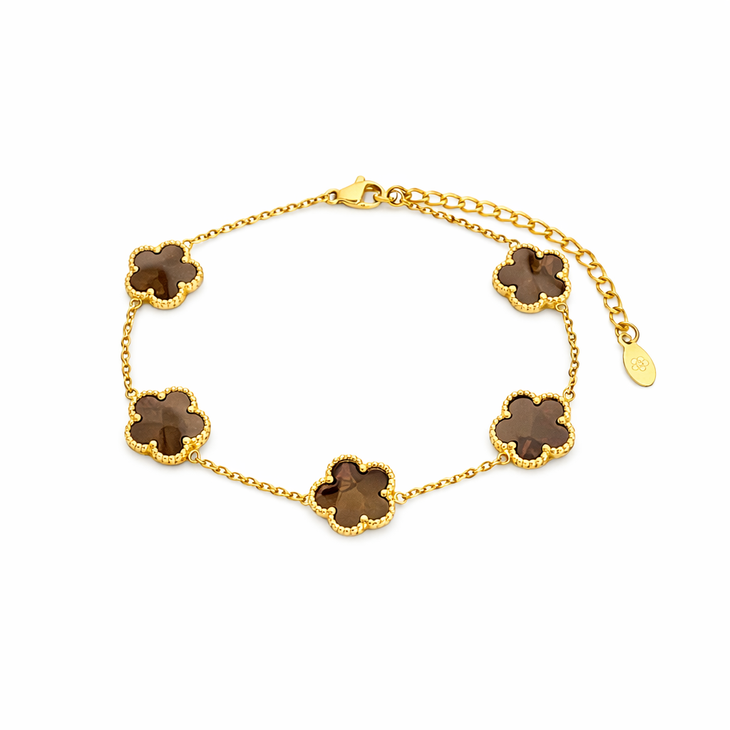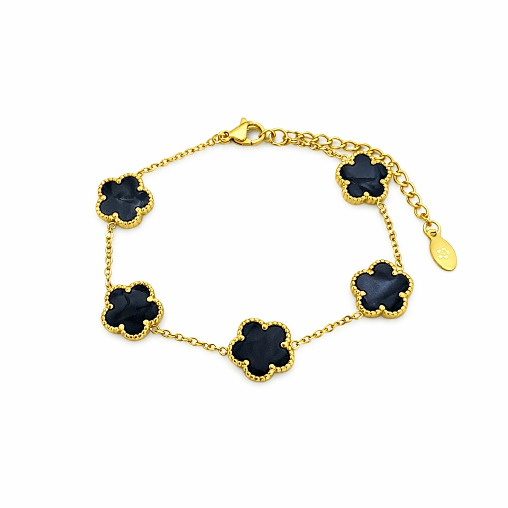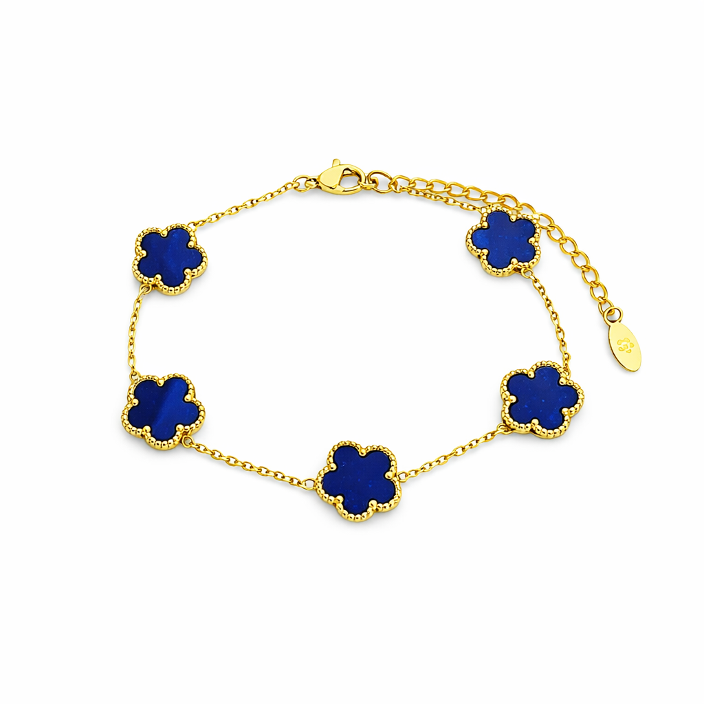 Dieses elegante Kleeblatt-Armband vereint zeitloses Design mit einem modernen Glücks-Symbol. Die 5 Kleeblatt-Motive sind harmonisch auf der feinen Kette verteilt und machen das Armband zum perfekten Begleiter – ob im Alltag, im Büro oder zu besonderen Anlässen. Dank Karabinerverschluss mit Verlängerungskette sitzt es bequem und lässt sich ideal mit anderen Armbändern kombinieren.